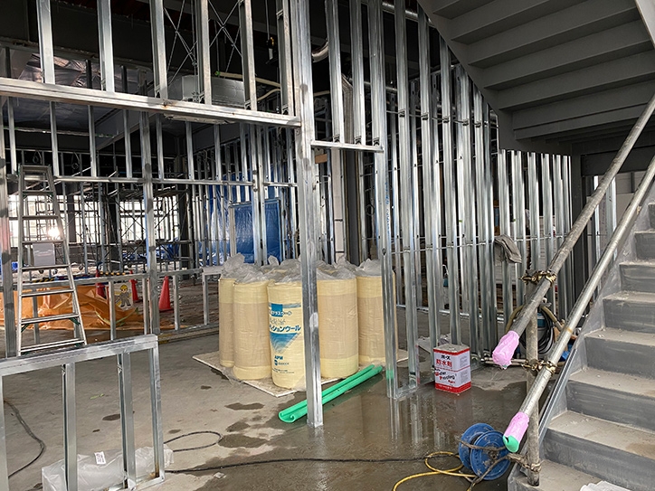 札幌市東区 「倉庫新築工事」耐火間仕切りLGSの様子