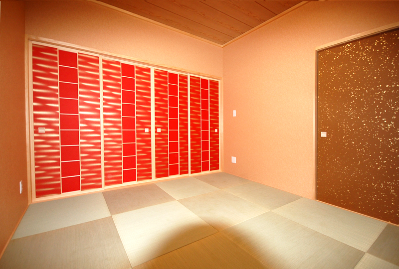 木造平屋住宅。樽前山が一望できる、高台に建つリゾートハウス。「和」を意識した引戸や障子、格子柄などを使用。リビング・ダイニングのあるメインスペースでは、両サイドのワイドな窓が四季折々の風景を描き出します。トイレを備えたゲストルームも。
